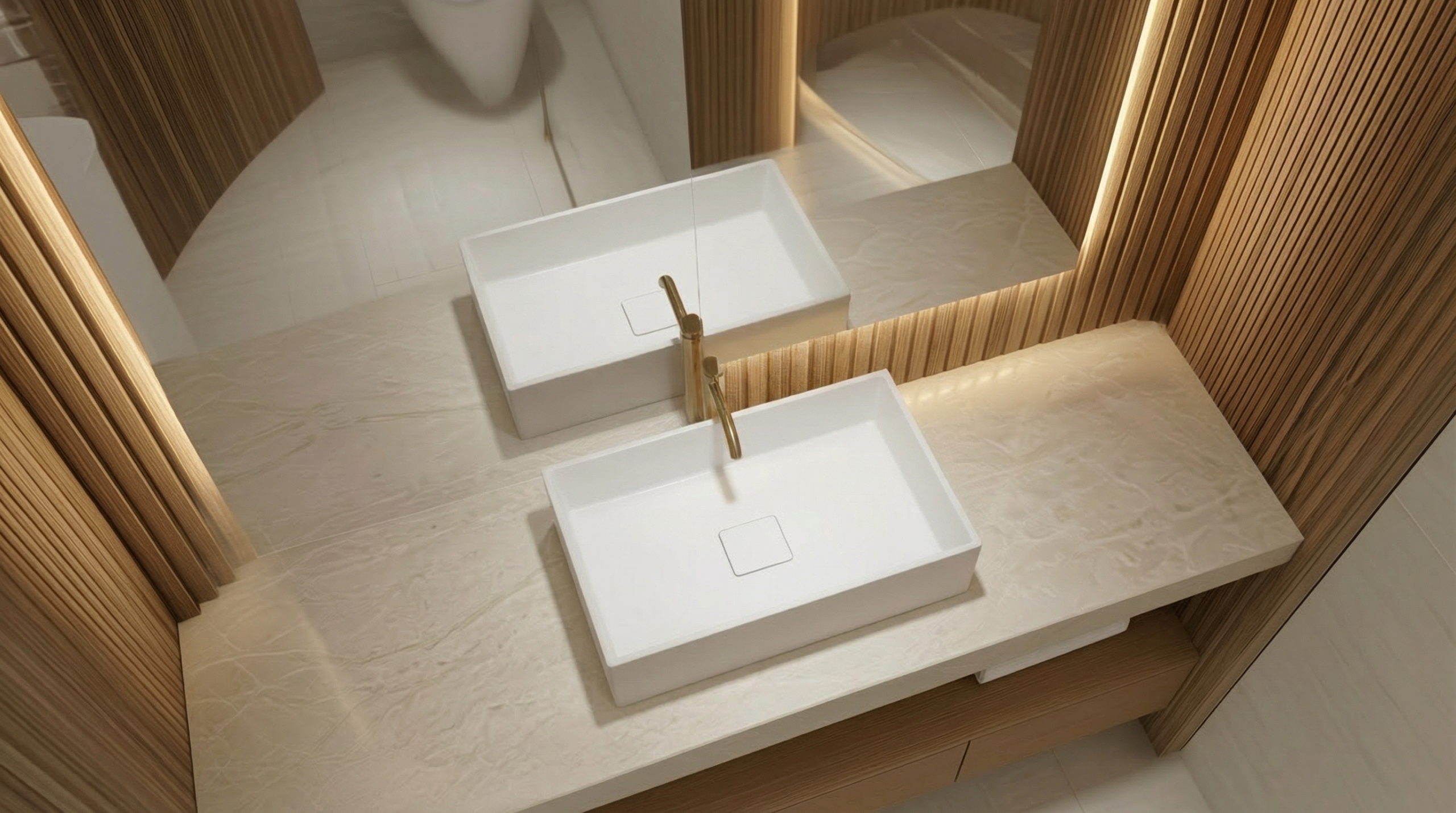 A Cuba Topázio é uma peça de design imbatível, inspirada na beleza e longevidade da pedra que lhe dá nome. Com a qualidade excepcional dos materiais Duramatt e Duraquartz, ela oferece resistência, sofisticação e um acabamento que transmite serenidade e elegância. Suas proporções compactas e bordas delicadas criam um equilíbrio perfeito entre funcionalidade e estética, tornando-a ideal para banheiros pequenos. A cuba é projetada para otimizar espaços sem comprometer o estilo, enquanto o formato suave e as linhas contínuas garantem fácil manutenção e integração harmoniosa com diversas bancadas. A Cuba Topázio é a sinergia entre performance e beleza duradoura, uma joia atemporal que transforma o ambiente de banho em um espaço de refinamento.