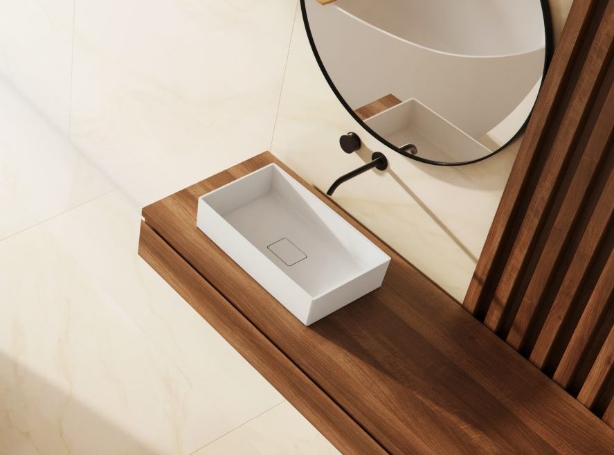 É um material de tecnologia Solid Surface, composto por minerais naturais e resinas que proporcionam ótima resistência.
